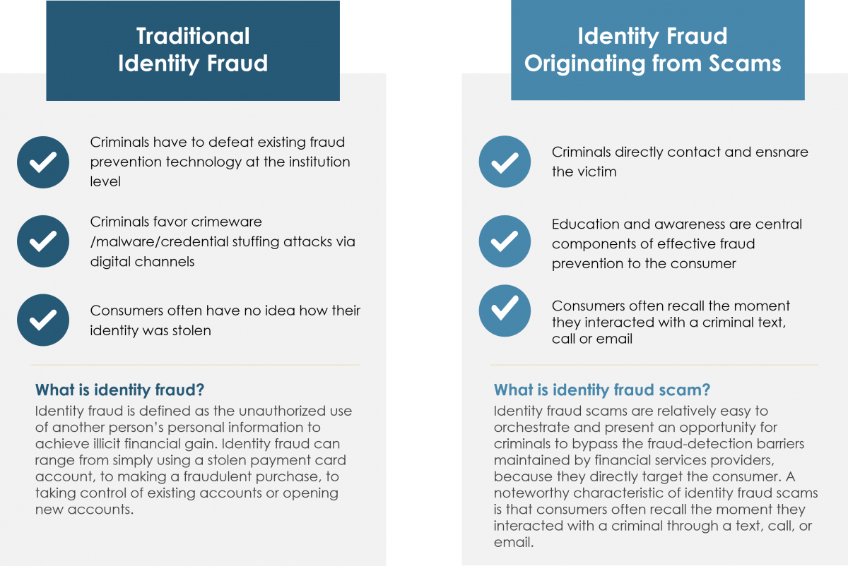 A noteworthy characteristic of identity fraud that originates from scams is the fact that consumers recall the moment they interacted with a criminal’s text, call, or email.
