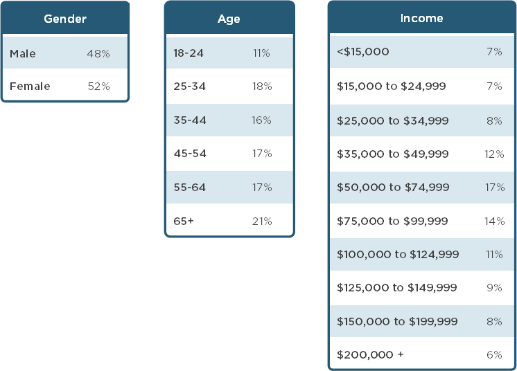 The consumer data in this report was collected from a 20-minute online survey of 2,500 respondents, conducted in September 2019. Respondents in the study were representative of the U.S. population over the age of 18 in terms of various demographics such as age, gender, and income. The overall margin of error is +/-1.96% at the 95% confidence level for questions answered by all respondents.